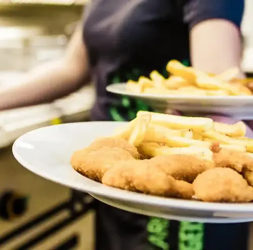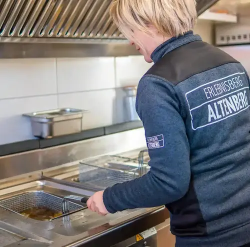 Deine Hauptaufgabe ist die Zubereitung unserer Speisen und Getränke. Dazu gehören Pommes, Schnitzel oder auch ein Kaffee. Neben dem Braten und Kochen bedienst du an der Essensaugabe direkt den Kunden.