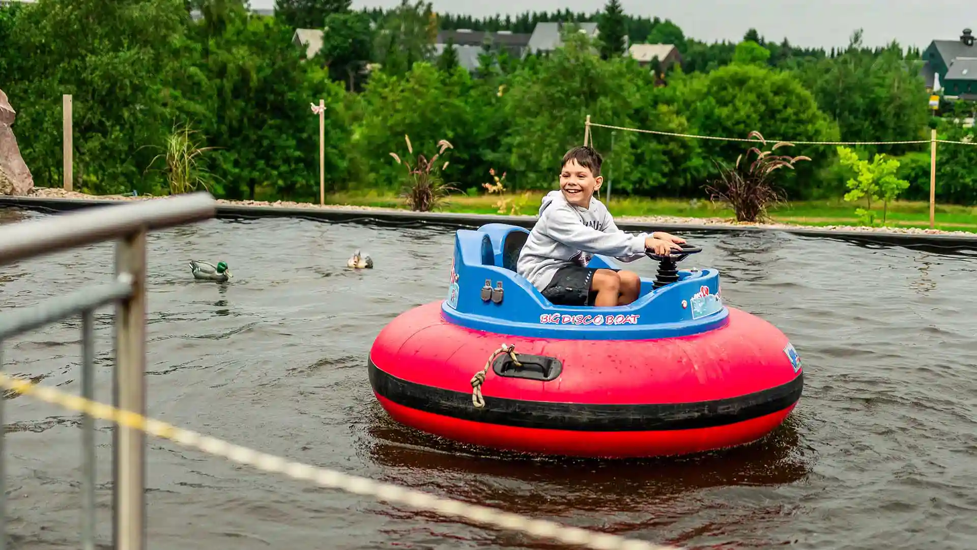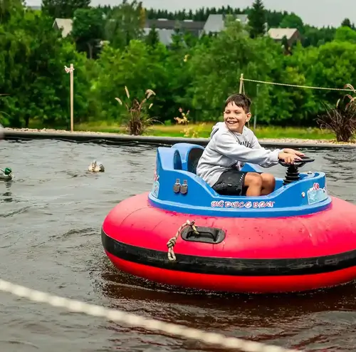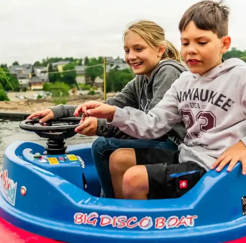 Du willst selbst der Kapitän sein? Bei unseren Bumper-Booten steuerst du selbst. Gemeinsam mit deinem Steuermann schippert ihr über den großen Teich. Ahoi Matrose!